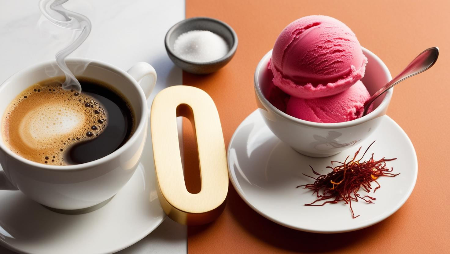 Un café, un sorbet, du sucre, le chiffre et zéro, du safran.